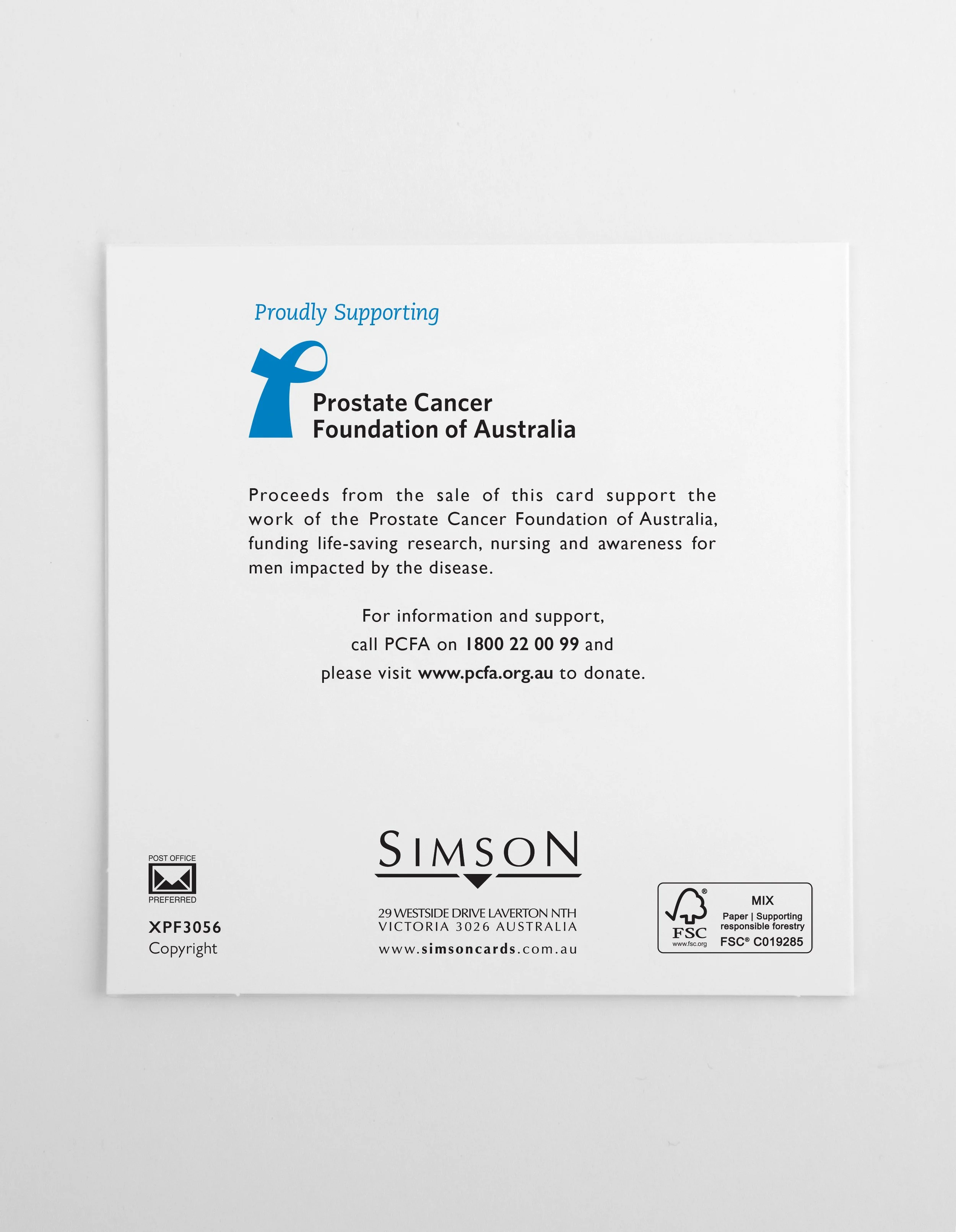Simson Cards has donated over $630,000 to PCFA and will continue to pay a percentage of the wholesale price of all PCFA branded Christmas and Father’s Day cards it sells.